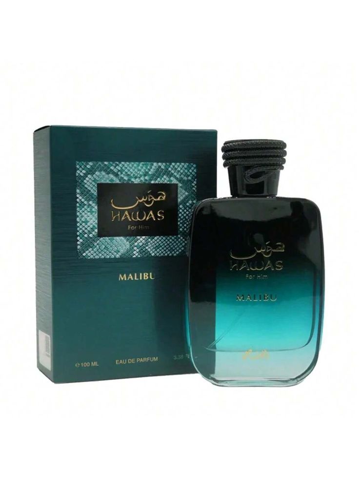 Hawas Malibu de Rasasi es una fragancia unisex fresca, frutal y vibrante, inspirada en playas soleadas, atardeceres relajados y el espíritu despreocupado del verano.